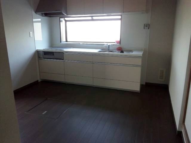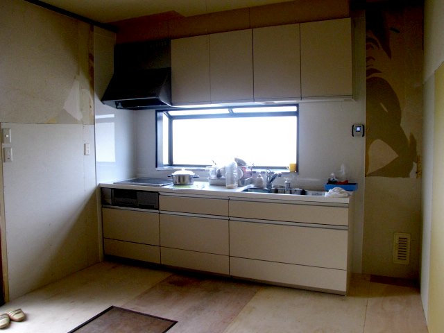 システムキッチン+床・天井・壁紙一式工事完了。