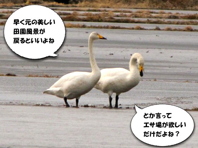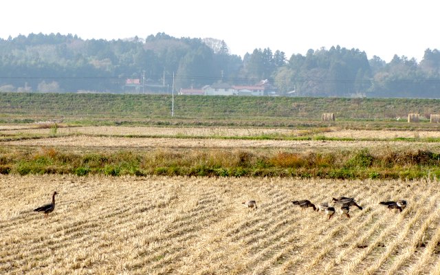 マガンの一家が田んぼでお食事をしていたんですが、
